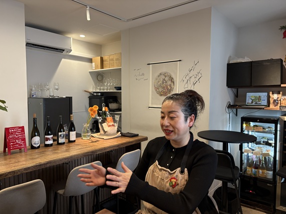 常に朗らかな表情の清水さん。女性一人でも気軽に入りやすい、癒しの空間のワインショップです。