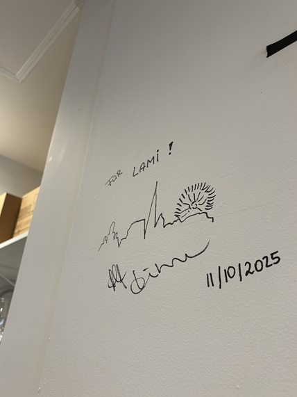 店内の壁には、ワイン生産者さんたちのサインが!